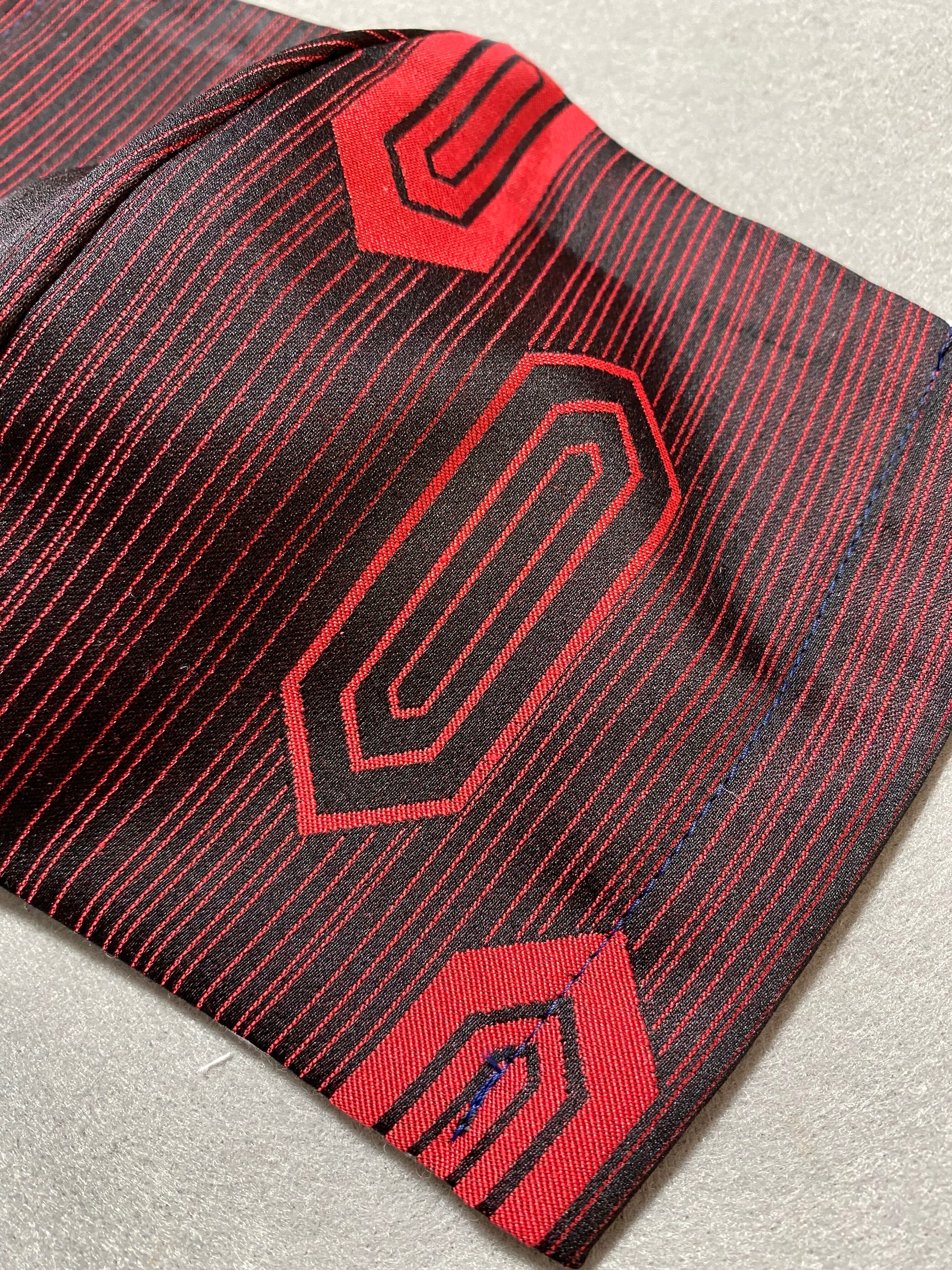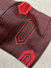 黒地に赤い縞と亀甲柄の着物リメイクマスク